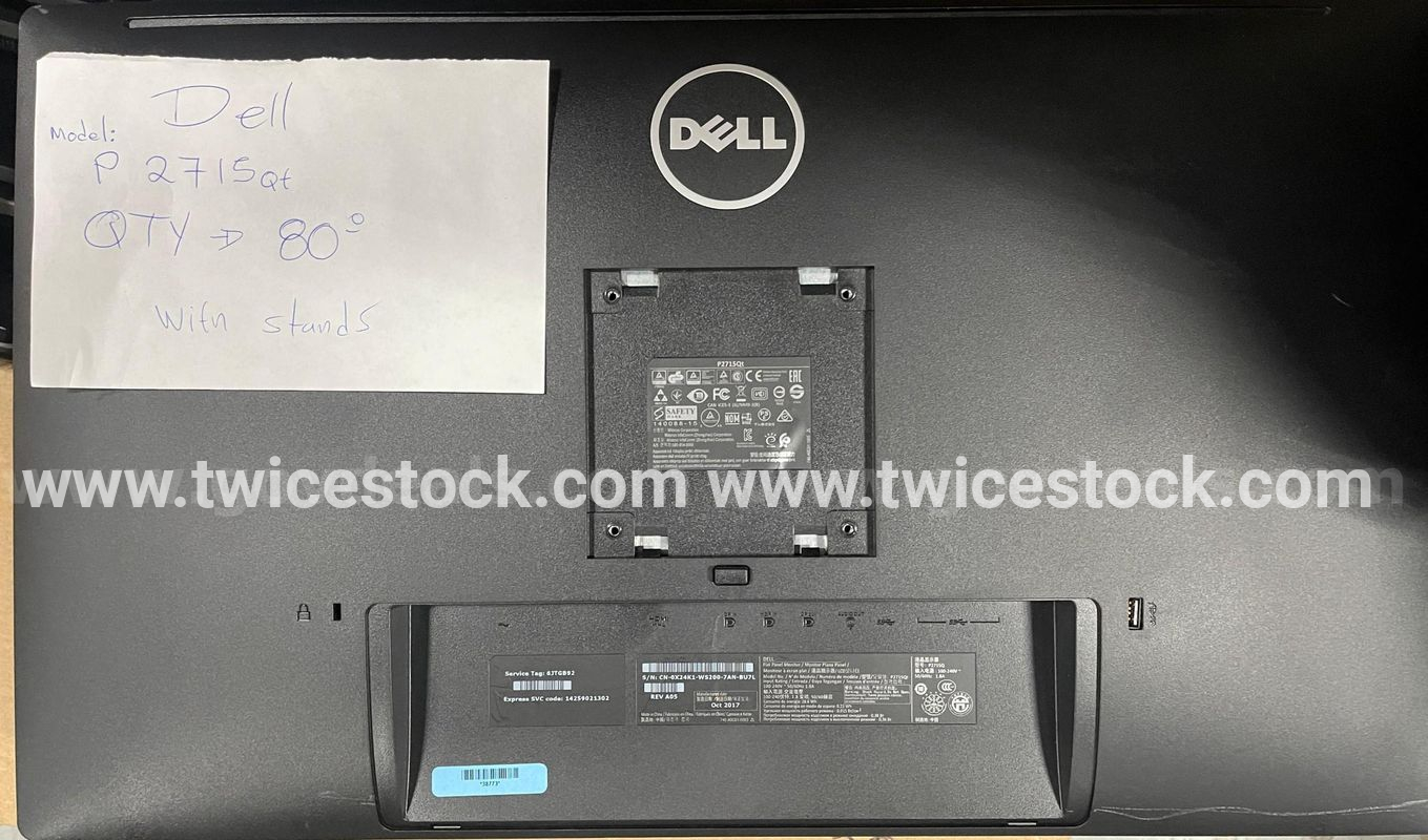 This auction contains the following:** 80x DELL P2715QT 27" Monitor 4K UHD 2160p 60 hz 9ms - 6ms **** 108x DELL U2713HMT 27" Monitor 2K QHD 1440p 60 hz 8ms **Stands: included (Height and angle adjustable with 90 degrees rotation)Power cords: Not includedCondition: Fully tested, pulled out of a working environment Grades A & BThey might have minor signs of wear on the case like scratchesFor further questions, send us an email or a message