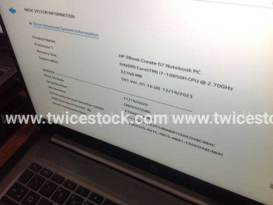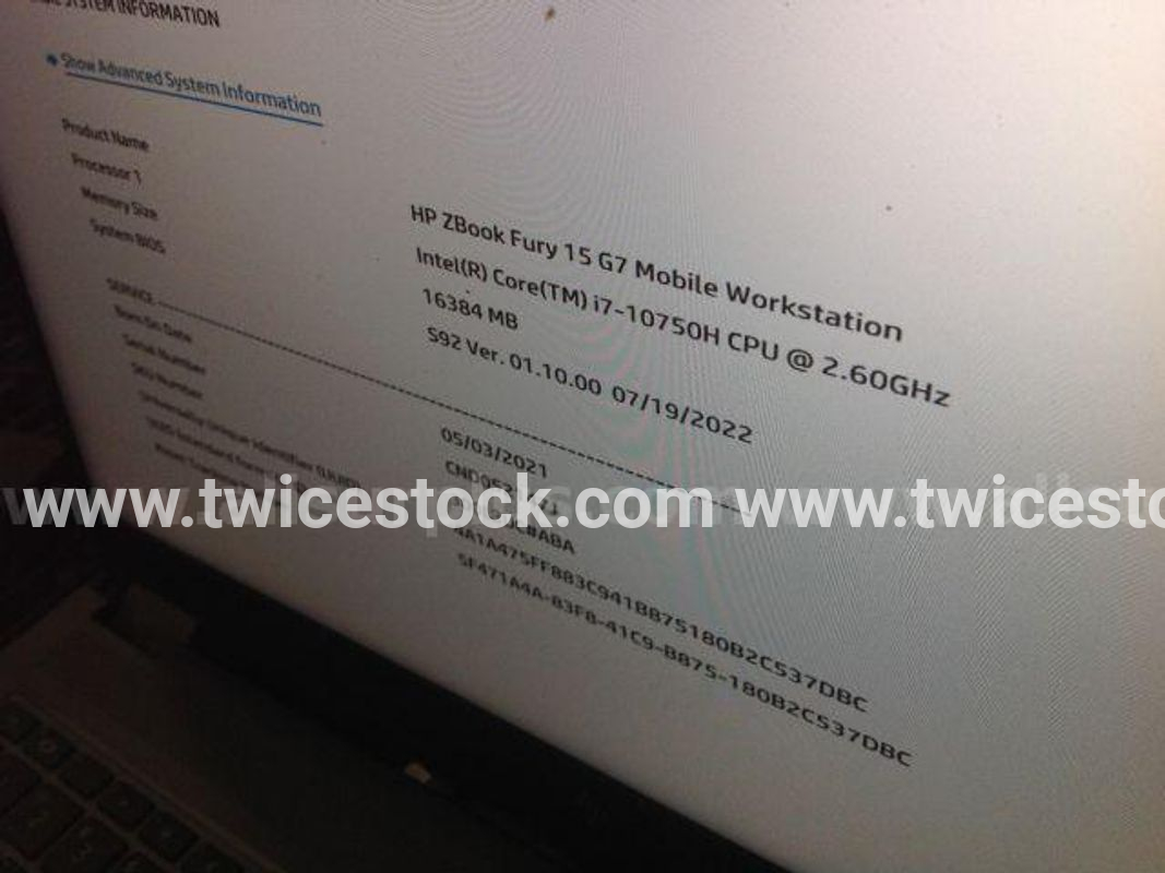 5ea HP Mdl Zbook 15 Fury/Create G7 Laptop, all units powered on to BIOS, No power supplies, To include: 3ea HP Mdl Zbook 15 Fury G7, All units have 2.6Ghz i7-10750H processor, 16Gb RAM, 1Tb SSD; 1ea HP Mdl Zbook Fury 15 G7 Laptop, unit has 2.7Ghz i7-10850H processor, 16Gb RAM, 512Gb SSD; 1ea HP Mdl Zbook Create G7 Laptop, unit has 2.7Ghz i7-10850H processor, 32Gb RAM, 1Tb SSD, Buyers responsible for all shipping and packing, aprox weight 30lbs [RSCG TID 10084882]